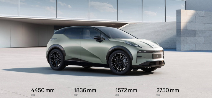 新车长宽高分别为 4450mm、1836mm、1572mm,轴距达到 2750mm,在同级别纯电 SUV 中属于偏长轴距布局。
