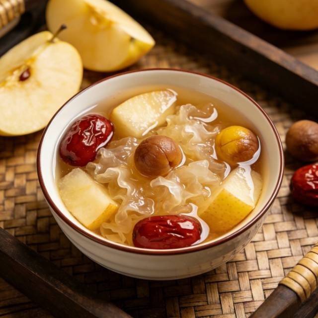 第四道:苹果红枣桂圆炖银耳(安神润燥+气血提亮)